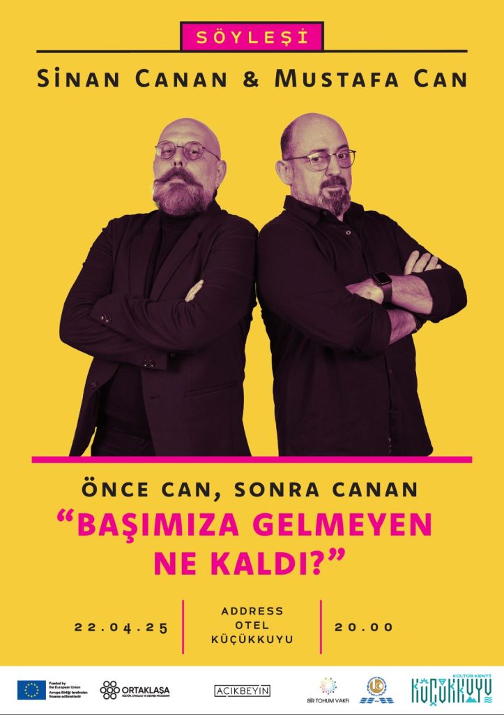Bir Tohum Vakfı ve Küçükkuyu Belediyesi iş birliğiyle, Avrupa Birliği desteğiyle ve İKSV yürütücülüğünde gerçekleşen Kültür Kenti Küçükkuyu programı kapsamında Prof.Dr. Sinan Canan ve Mustafa Can ile “Başımıza Gelmeyen Ne Kaldı?” sorusuna birlikte cevap aradık. Hayatın karmaşasına, kırılgan yanlarımıza, içimizde büyüttüğümüz cesarete birlikte baktık.