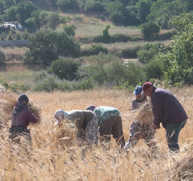 Geleneksel hasat pratiklerine katılmak için hasadımızı yapacağımız Mustafa Alper Ülgen’in yerel buğday biyoçeşitlilik tarlasına gittik. Hasada başlarken hasadımızın hepimize bereketli olmasını diledik ve Süleymanköylü kadınların rehberliğinde ortaklaşa çalışarak hasadımızı gerçekleştirdik.